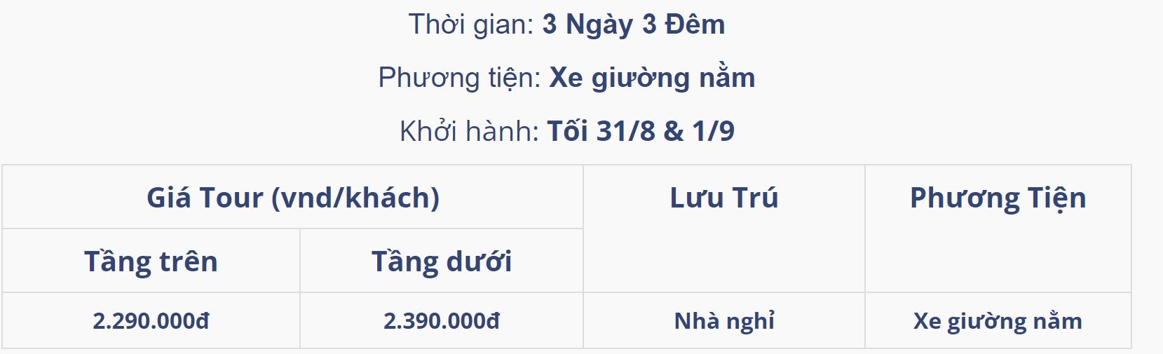 Bảng Giá Tour Hòn Sơn Nam Du 3 Ngày 3 Đêm Lễ 2/9 :