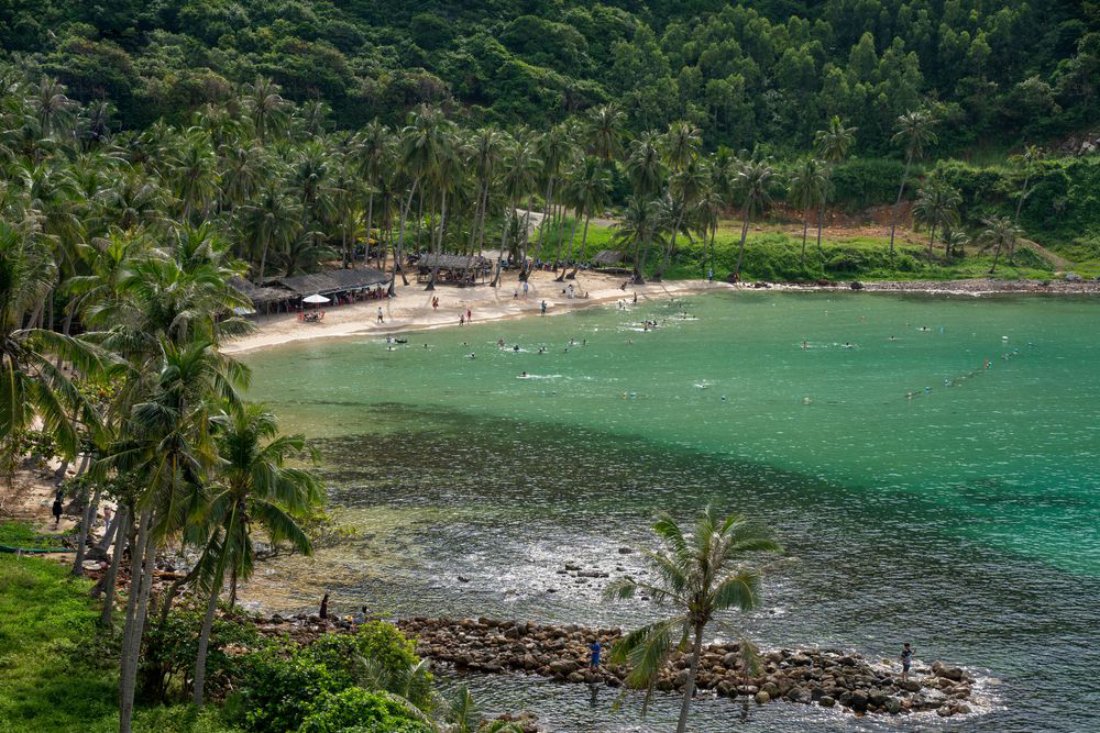 07h00: Đoàn khám phá cảnh sắc trên Hòn Lớn bằng xe máy, tham quan, tắm biển tại Bãi Cây Mến, một trong những bãi tắm đẹp của đảo.